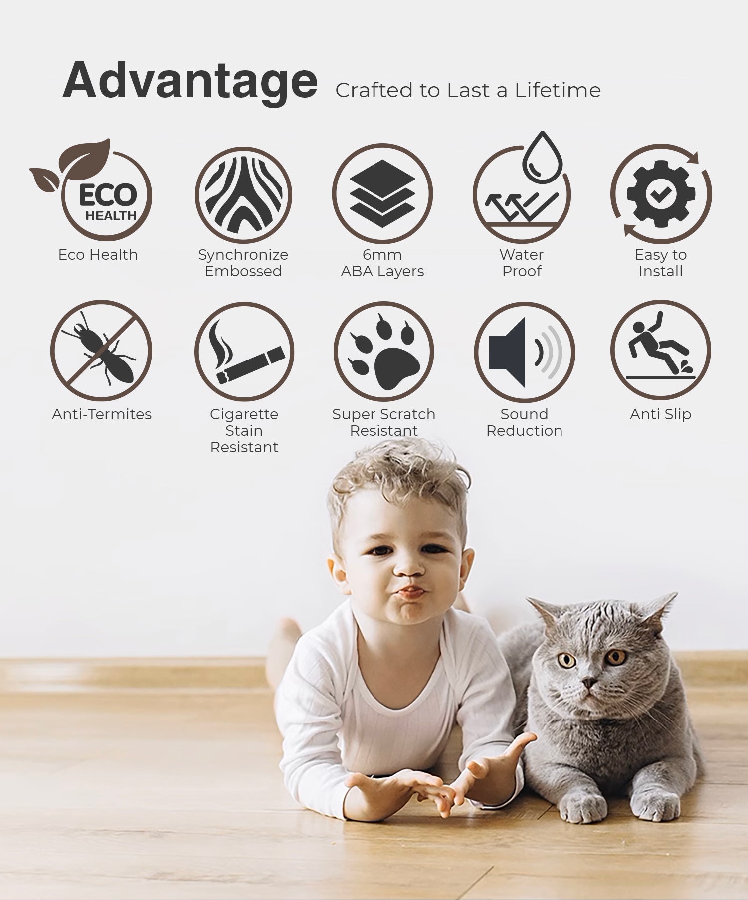 ABA SPC Flooring's anti-slip prowess is achieved through meticulous engineering. Its surface is crafted with precision, incorporating specialized textures that enhance traction. This thoughtful design provides a secure grip underfoot, reducing the risk of slips and falls. With ABA SPC Flooring, safety is seamlessly integrated into the aesthetic, making it an ideal choice for any space.